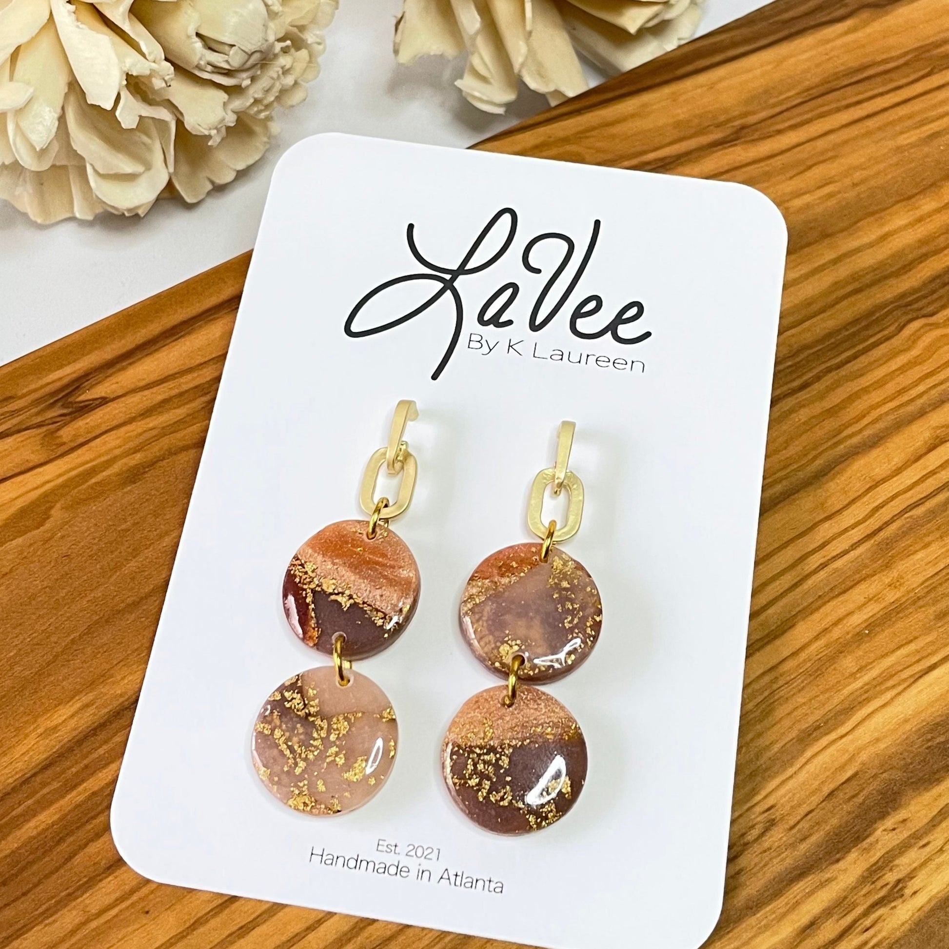 Each pair of LaVee earrings are handmade in small batches. They are unique and one of a kind.